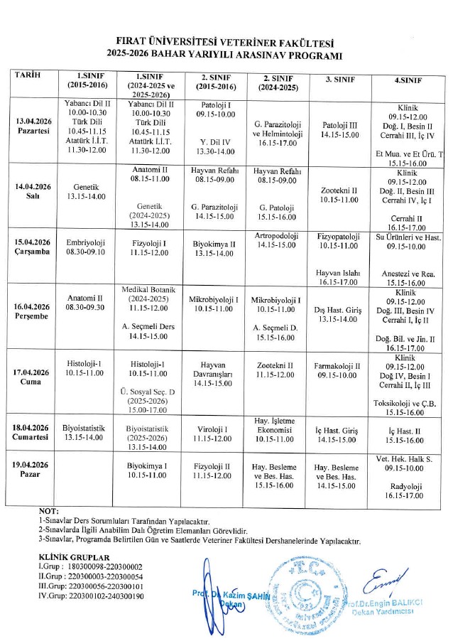 2025-2026 EĞİTİM-ÖĞRETİM BAHAR YARIYILI VİZE SINAV PROGRAMI